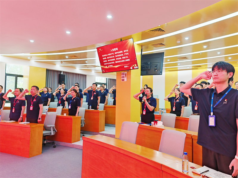 會議最后,全體黨員起立重溫入黨誓詞,這一莊嚴時刻讓每一位黨員的心靈都得到了洗禮,更加堅定了他們的理想信念和對黨忠誠的決心。接著,全體黨員齊聲合唱《我和我的祖國》,也展示了黨組織的凝聚力和戰(zhàn)斗力。