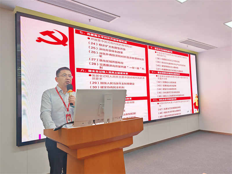黨課中,陳志詳細(xì)解讀了二十屆三中全會的核心精神,并將理論與實(shí)踐緊密結(jié)合,把全會精神與企業(yè)的實(shí)際發(fā)展聯(lián)系起來,提出全體黨員在新時代背景下應(yīng)當(dāng)承擔(dān)的責(zé)任與使命。陳志強(qiáng)調(diào),要深刻認(rèn)識二十屆三中全會的重大意義,準(zhǔn)確理解進(jìn)一步全面深化改革的重大舉措,堅(jiān)定不移地?fù)碜o(hù)黨的領(lǐng)導(dǎo),為全面推進(jìn)中華民族偉大復(fù)興而努力奮斗!